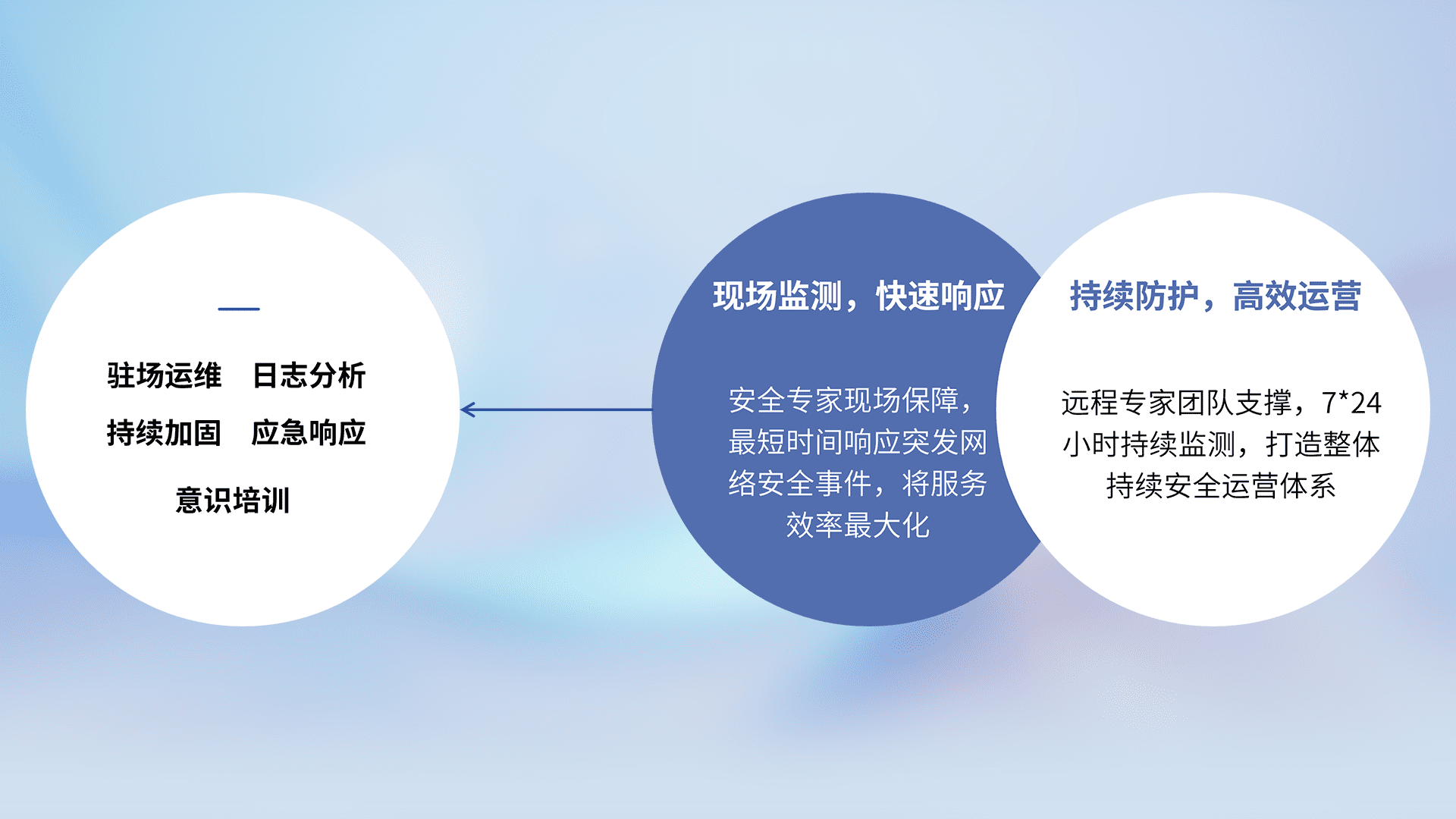 针对客户行业特性,,,,提供专属的一站式安全管理服务,,帮助客户全面感知网络空间威胁,,,,通过安全专家的线上、、线下防护支持,,,实现风险闭环,,,,将安全保障常态化,,为客户打造常态化安全运维运营服务。。。